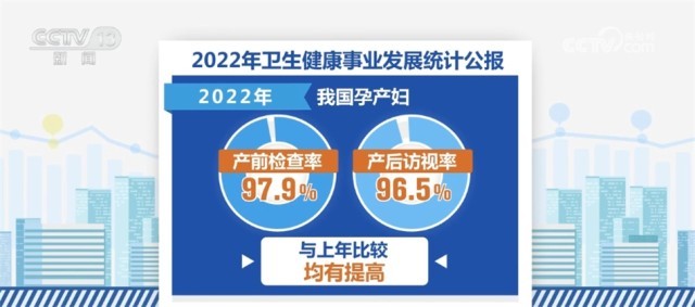 在婦幼健康方面,2022年我國孕產(chǎn)婦產(chǎn)前檢查率97.9%,產(chǎn)后訪視率96.5%。與上年比較,產(chǎn)前檢查率和產(chǎn)后訪視率均有提高。2022年全國住院分娩率為99.94%,基本實(shí)現(xiàn)全部住院分娩。據(jù)全國婦幼健康監(jiān)測,2022年,我國5歲以下兒童死亡率6.8‰,嬰兒死亡率4.9‰,全國孕產(chǎn)婦死亡率為15.7/10萬,均有不同程度下降。