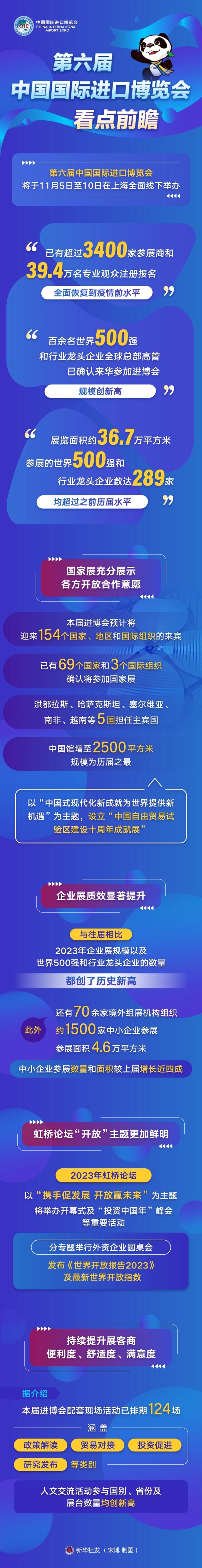 “已有超過(guò)3400家參展商和39.4萬(wàn)名專業(yè)觀眾注冊(cè)報(bào)名,全面恢復(fù)到疫情前水平”“百余名世界500強(qiáng)和行業(yè)龍頭企業(yè)全球總部高管已確認(rèn)來(lái)華參加進(jìn)博會(huì),規(guī)模創(chuàng)新高”“展覽面積約36.7萬(wàn)平方米,參展的世界500強(qiáng)和行業(yè)龍頭企業(yè)數(shù)達(dá)289家,均超過(guò)之前歷屆水平”……