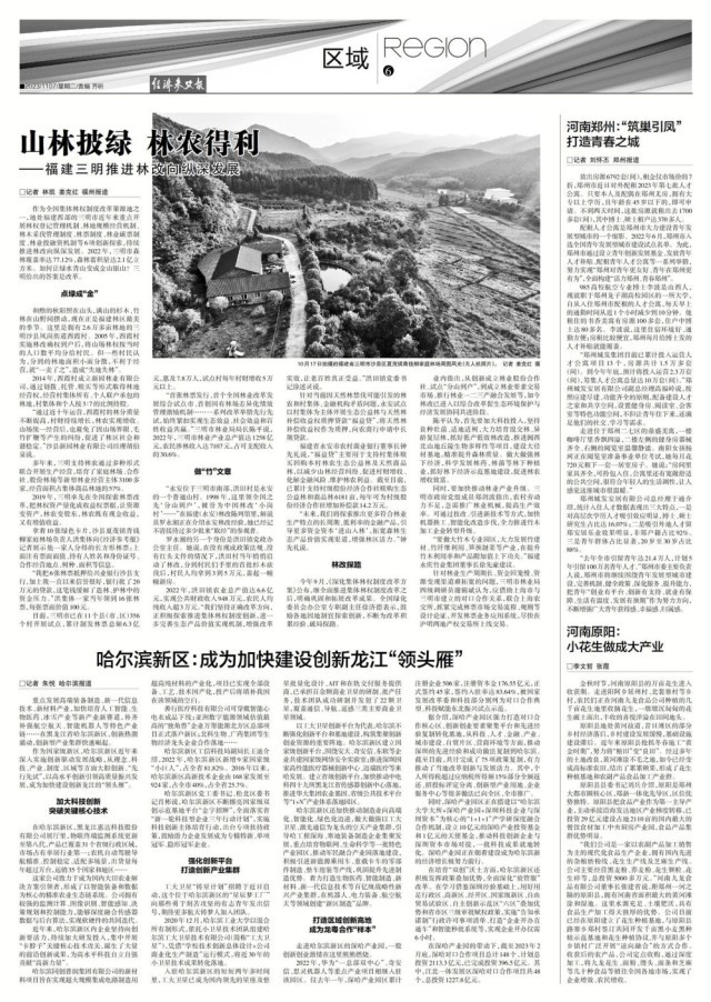 “首張林票發(fā)行、首個全國林業(yè)改革發(fā)展綜合試點(diǎn)市、首創(chuàng)國有林場差異化績效管理激勵機(jī)制……一系列改革舉措先行先試,始終緊扣實現(xiàn)生態(tài)效益、社會效益和百姓收益共贏?!比魇辛謽I(yè)局局長陳平說,2022年,三明市林業(yè)產(chǎn)業(yè)總產(chǎn)值達(dá)1258億元,農(nóng)民涉林收入達(dá)7107元,占可支配收入的30.6%。