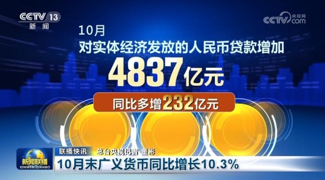 10月末廣義貨幣同比增長(zhǎng)10.3%