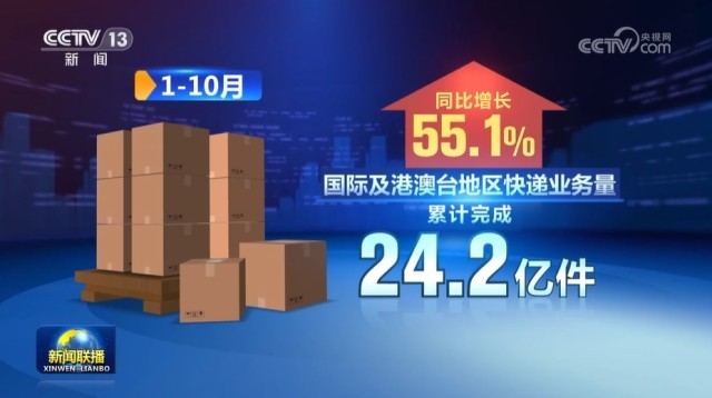 隨著我國主要快遞企業(yè)布局國際寄遞網(wǎng)絡(luò),加快海外倉建設(shè),新開通多條國際全貨機(jī)航線,通過為消費(fèi)者提供全鏈路跨境電商寄遞服務(wù),郵政快遞業(yè)在促進(jìn)產(chǎn)品跨境流動(dòng)中的作用明顯增強(qiáng),國際供應(yīng)鏈產(chǎn)業(yè)鏈保障水平進(jìn)一步提升。1—10月,國際及港澳臺(tái)地區(qū)快遞業(yè)務(wù)量累計(jì)完成24.2億件,同比增長55.1%。