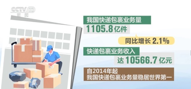 我國(guó)快遞包裹業(yè)務(wù)量同比增長(zhǎng)2.1% 穩(wěn)居世界第一