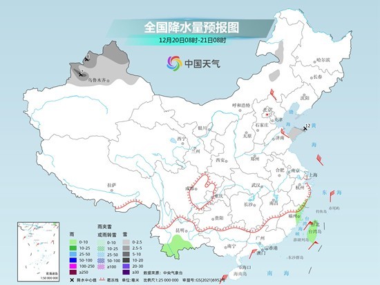 中央氣象臺預計,今天吉林東部、遼寧中東部、新疆北疆北部、青海北部、甘肅河西、山東半島、安徽東南部、江蘇南部、浙江西北部等地部分地區(qū)有小雪或雨夾雪,其中,山東半島北部部分地區(qū)有中到大雪(5~6毫米)。湖南南部、江西中南部、浙江中南部、福建大部、云南東部、廣西南部和東部、廣東西部和北部、海南島大部、臺灣島等地部分地區(qū)有小雨。