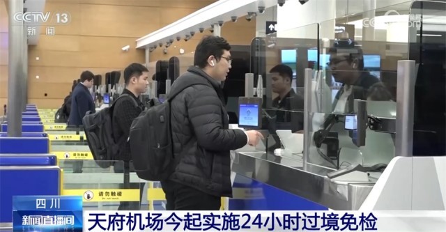 今天起,成都天府國際機場正式實施24小時直接過境旅客免辦邊檢手續(xù)便利措施,中轉時間較以往縮短近30分鐘。