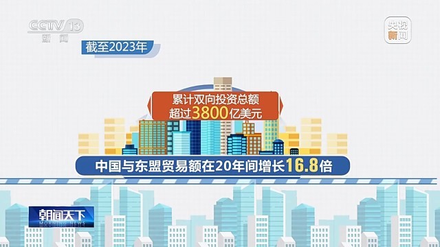 截至2023年,中國(guó)與東盟貿(mào)易額在20年間增長(zhǎng)16.8倍,累計(jì)雙向投資總額超過(guò)3800億美元。