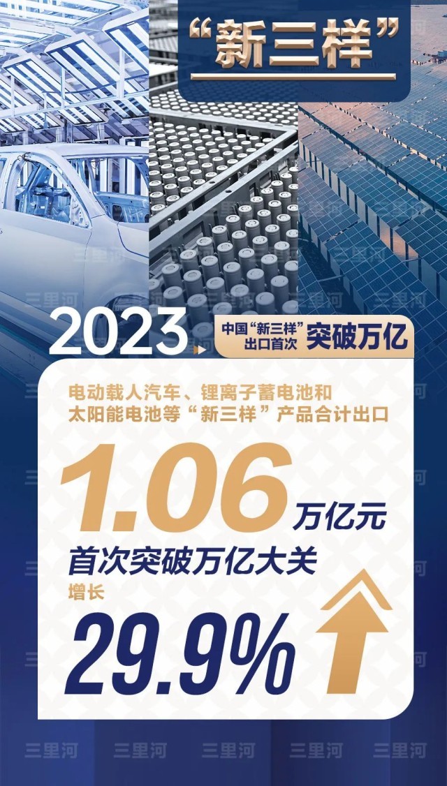 活力來自新動(dòng)能——制造業(yè)技改投資增長3.8%,高技術(shù)產(chǎn)業(yè)投資增長10.3%,快于全部固定資產(chǎn)投資的增速。2023年電動(dòng)載人汽車、鋰電池和太陽能電池等“新三樣”產(chǎn)品合計(jì)出口1.06萬億元,首次突破萬億大關(guān)。中國經(jīng)濟(jì)在加快培育新質(zhì)生產(chǎn)力中不斷發(fā)展壯大。