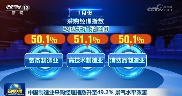 中國(guó)物流與采購聯(lián)合會(huì)、國(guó)家統(tǒng)計(jì)局服務(wù)業(yè)調(diào)查中心1月31日公布,1月份中國(guó)制造業(yè)采購經(jīng)理指數(shù)為49.2%,較上月回升0.2個(gè)百分點(diǎn),結(jié)束了連續(xù)3個(gè)月下降勢(shì)頭,景氣水平有所改善。