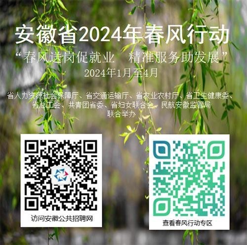 2024年春風(fēng)行動(dòng)正在各地火熱開(kāi)展。今天,人力資源社會(huì)保障部公布各地春風(fēng)行動(dòng)活動(dòng)專(zhuān)區(qū)、招聘服務(wù)平臺(tái)以及微信小程序,發(fā)布現(xiàn)場(chǎng)招聘會(huì)、網(wǎng)上招聘會(huì)、直播帶崗等活動(dòng)安排以及企業(yè)用工需求,將崗位送到勞動(dòng)者身邊。大家可通過(guò)掃描下方二維碼、點(diǎn)擊網(wǎng)站鏈接、進(jìn)入微信小程序查看。