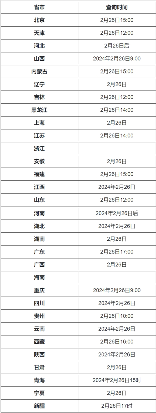 山西、重慶考生可于26日9時起查詢;天津、吉林、山東考生可在26日12時起查詢;黑龍江、江蘇考生可以在26日14時起查詢;北京、福建、青海、內(nèi)蒙古考生可于26日15時起查詢;廣東、新疆考生可于26日17時起查詢。詳見>>2024研考初試成績查詢時間匯總