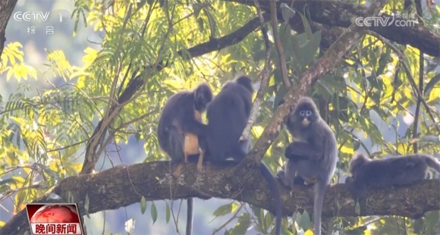 原來爭相帶娃是菲氏葉猴家族獨特的育兒方式。菲氏葉猴聚群而居,每個家庭成員都想和“小金猴”有更多親密接觸。此外,據護林員介紹,這些菲氏葉猴還有著“謙謙君子”的美譽。