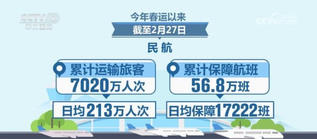 1月份,民航全行業(yè)完成運(yùn)輸總周轉(zhuǎn)量116.1億噸公里,同比增長57.1%;完成旅客運(yùn)輸量5731.8萬人次,同比增長44.1%,民航客運(yùn)恢復(fù)程度達(dá)到疫情以來月度新高;完成貨郵運(yùn)輸量75.3萬噸,同比增長53.9%,民航貨運(yùn)規(guī)模連續(xù)六個(gè)月超過疫情前水平。從數(shù)據(jù)看,今年春運(yùn)以來,截至2月27日,民航累計(jì)運(yùn)輸旅客7020萬人次,日均213萬人次;累計(jì)保障航班56.8萬班,日均保障17222班。