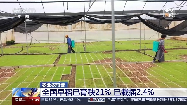 全國早稻已育秧21%,已栽插2.4%。其中,海南育秧近六成、栽插近七成;云南育秧近九成、廣東過6成、廣西福建育秧近半,零星栽插;江西、湖南零星育秧,預計3月20日之后開始大面積集中育秧。