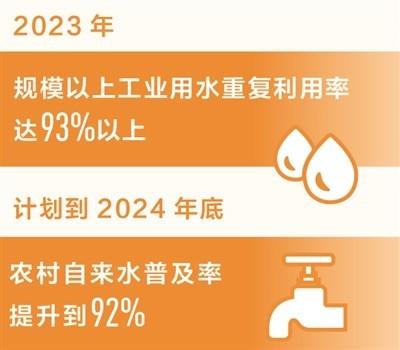 推進(jìn)農(nóng)村供水高質(zhì)量發(fā)展。農(nóng)村自來水普及率達(dá)到90%。計劃到今年底,農(nóng)村自來水普及率提升到92%,規(guī)模化供水工程覆蓋農(nóng)村人口比例提高到63%。