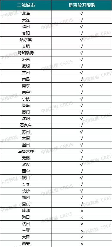據(jù)中指研究院監(jiān)測數(shù)據(jù),截至目前,核心二線城市中,僅成都、??凇⒑贾荨⑷齺?、天津、西安保留部分限購政策。