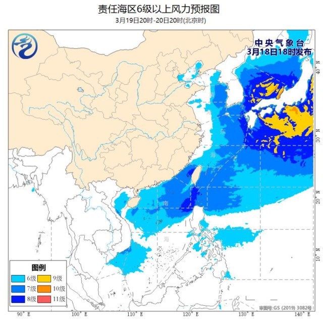 預(yù)計(jì),18日夜間至19日夜間,渤海、渤海海峽、黃海大部海域、東海北部海域?qū)⒂?~7級(jí),陣風(fēng)8級(jí)的偏北或西北風(fēng)。20日夜間至21日白天,渤海、渤海海峽、黃海大部海域?qū)⒂?~7級(jí),陣風(fēng)8級(jí)的偏南風(fēng)。