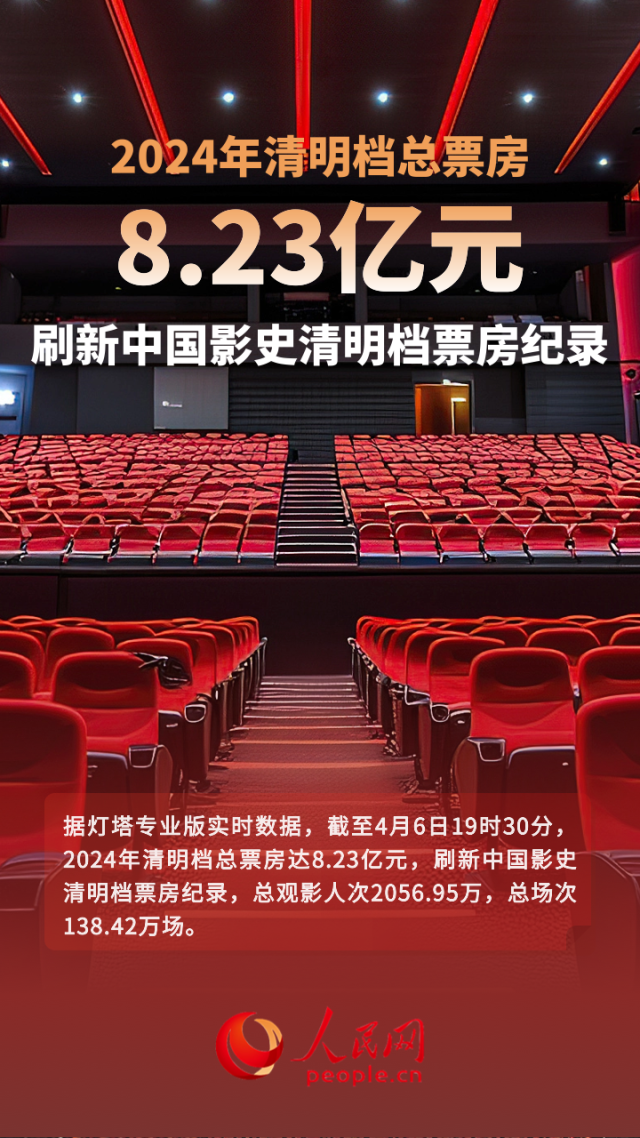 據(jù)燈塔專業(yè)版實(shí)時(shí)數(shù)據(jù),截至4月6日19時(shí)30分,2024年清明檔總票房達(dá)8.23億元,刷新中國影史清明檔票房紀(jì)錄,總觀影人次2056.95萬,總場次138.42萬場。