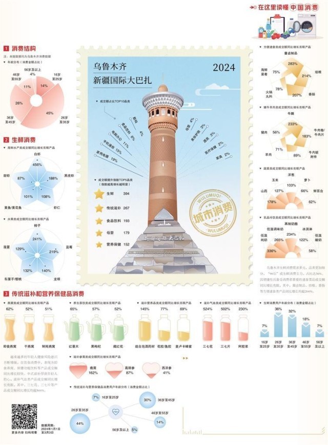 烏魯木齊從營造放心消費(fèi)環(huán)境等方面切入,堅(jiān)持市場(chǎng)主導(dǎo),培育消費(fèi)新熱點(diǎn)。去年,烏魯木齊改造提升22個(gè)商圈,創(chuàng)建10個(gè)一刻鐘便民生活圈,推動(dòng)傳統(tǒng)商超向現(xiàn)代商業(yè)綜合體轉(zhuǎn)型升級(jí);結(jié)合地域特色,圍繞夜食、夜購、夜娛、夜游、夜展等,發(fā)展夜間消費(fèi)新場(chǎng)景,有力帶動(dòng)了消費(fèi),2023年全市夜經(jīng)濟(jì)累計(jì)人流量達(dá)1.43億人次、消費(fèi)額90億元。