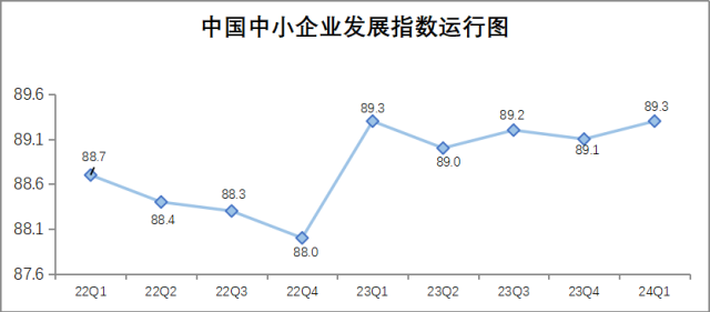 中國中小企業(yè)協(xié)會(huì)今天(9日)發(fā)布,一季度中國中小企業(yè)發(fā)展指數(shù)為89.3,比去年四季度上升0.2點(diǎn)。