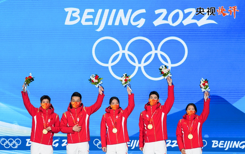 “冰雪白”和“中國紅”交相輝映。在北京第24屆冬季奧林匹克運動會上,中國冰雪健兒敢于拼搏、同心同力,全項參賽、全力爭勝,勇奪9枚金牌、4枚銀牌、2枚銅牌,取得了我國參加冬奧會的歷史最好成績,為祖國和人民贏得了榮譽。