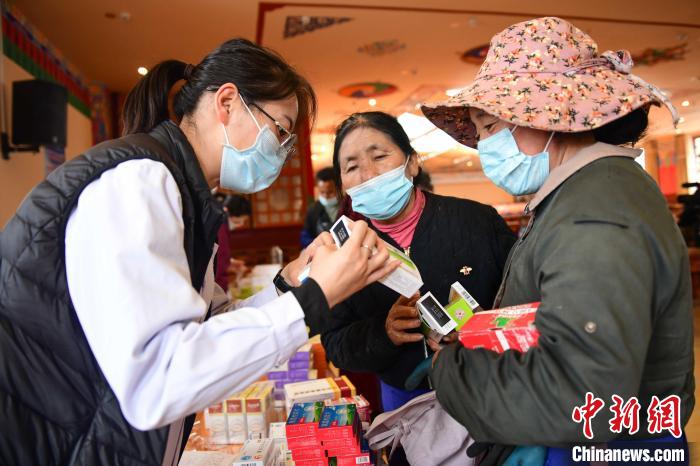 圖為醫(yī)護人員為民眾發(fā)放藥品。 貢嘎來松 攝