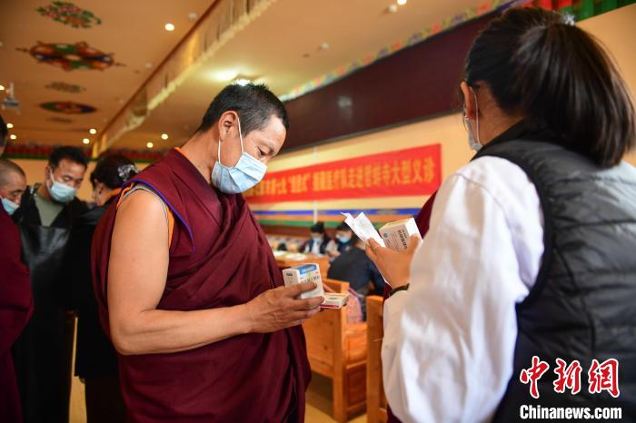 圖為醫(yī)護人員為哲蚌寺僧眾發(fā)放藥品?!∝暩聛硭?攝