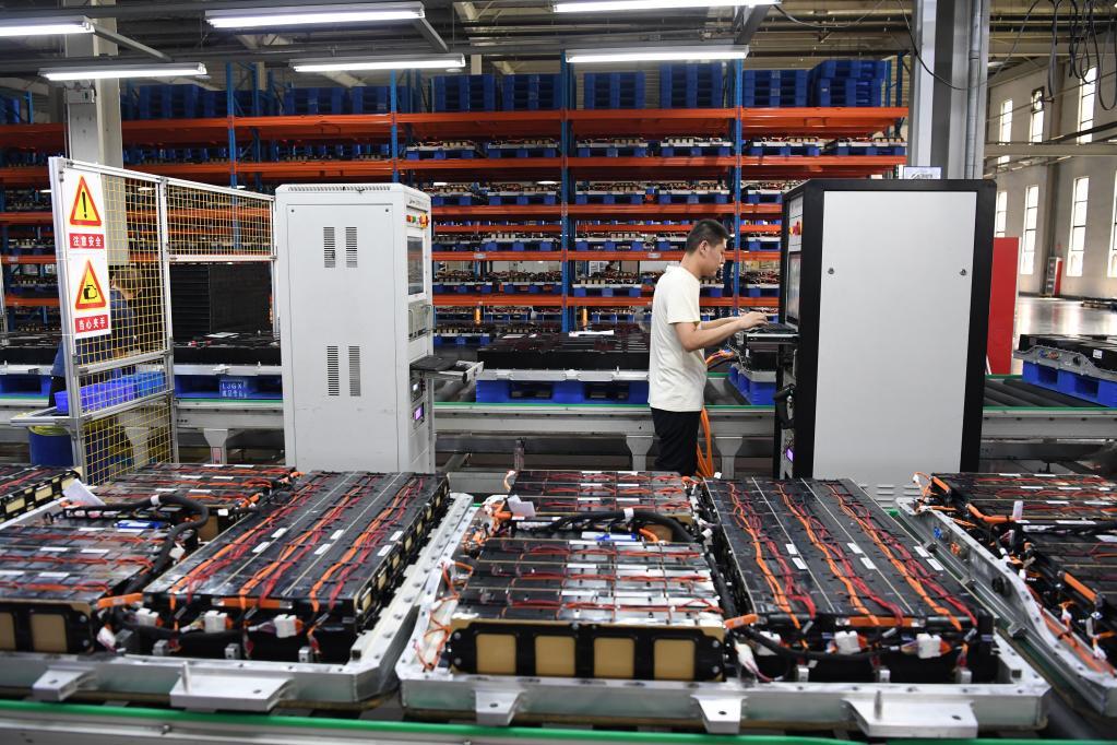 6月21日,工作人員在位于廬江高新區(qū)的國(guó)軒新能源(廬江)有限公司電池車(chē)間內(nèi)忙碌。 新華社記者 劉軍喜 攝