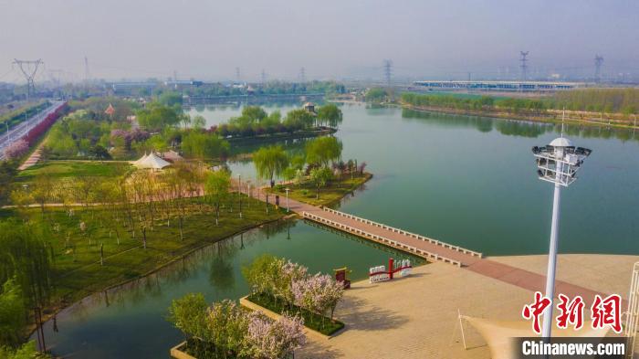 邢臺(tái)市任澤區(qū)邢州湖公園綠道生態(tài)系統(tǒng)。(無人機(jī)照片) 劉云洲 攝