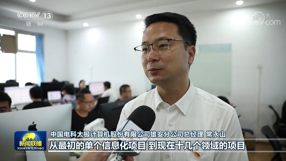 中國電科太極計算機股份有限公司雄安分公司總經理 常永山:我們剛來新區(qū)的時候,團隊只有兩三個人,經過這幾年的發(fā)展已經有一百二三十人了,從最初單個的信息化項目,到現(xiàn)在十幾個領域的項目。