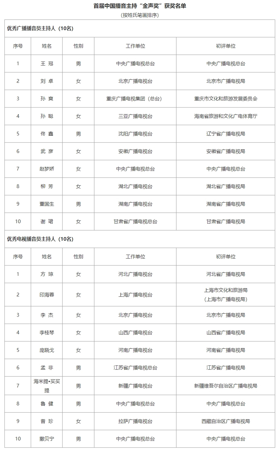 撒貝寧、孟非等20人獲首屆中國播音主持金聲獎