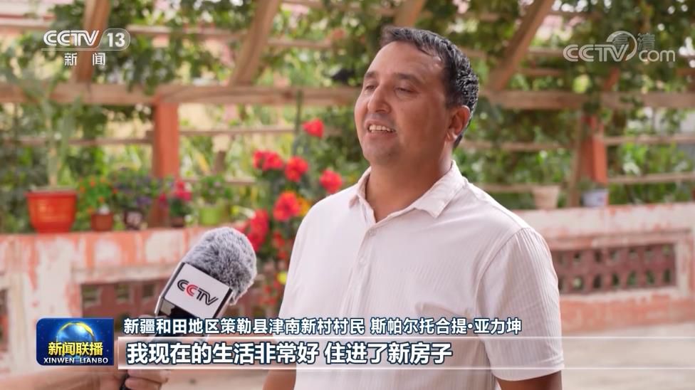 新疆和田地區(qū)策勒縣津南新村村民 斯帕爾托合提·亞力坤:我現(xiàn)在的生活非常好,住進了新房子,家里通水通電也有網(wǎng)絡,家里種了兩座大棚,我還當貨車司機配送貨物,我們家一年的收入10多萬元,我覺得生活很幸福,感恩黨、感恩總書記。