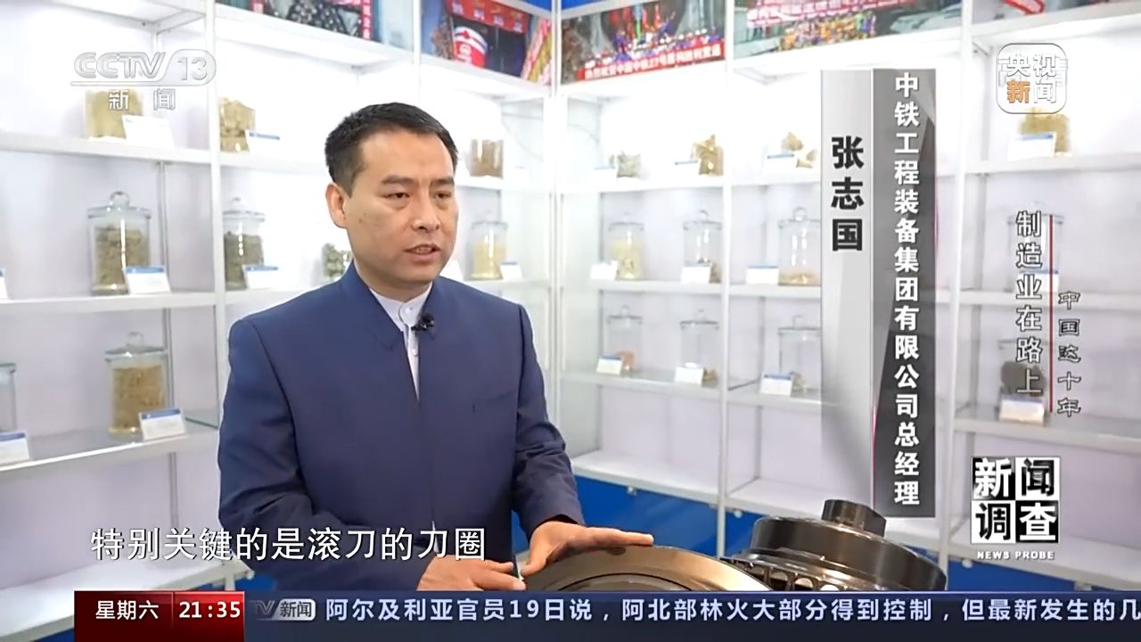 中鐵工程裝備集團(tuán)有限公司總經(jīng)理 張志國:我們在研究這個刀圈的時候和清華大學(xué)等大的院校,專業(yè)的院校進(jìn)行合作,經(jīng)過我們實(shí)驗(yàn)以后我們2018年實(shí)現(xiàn)了國產(chǎn)化,目前整個中國市場上的刀具國產(chǎn)的刀具占到了90%。