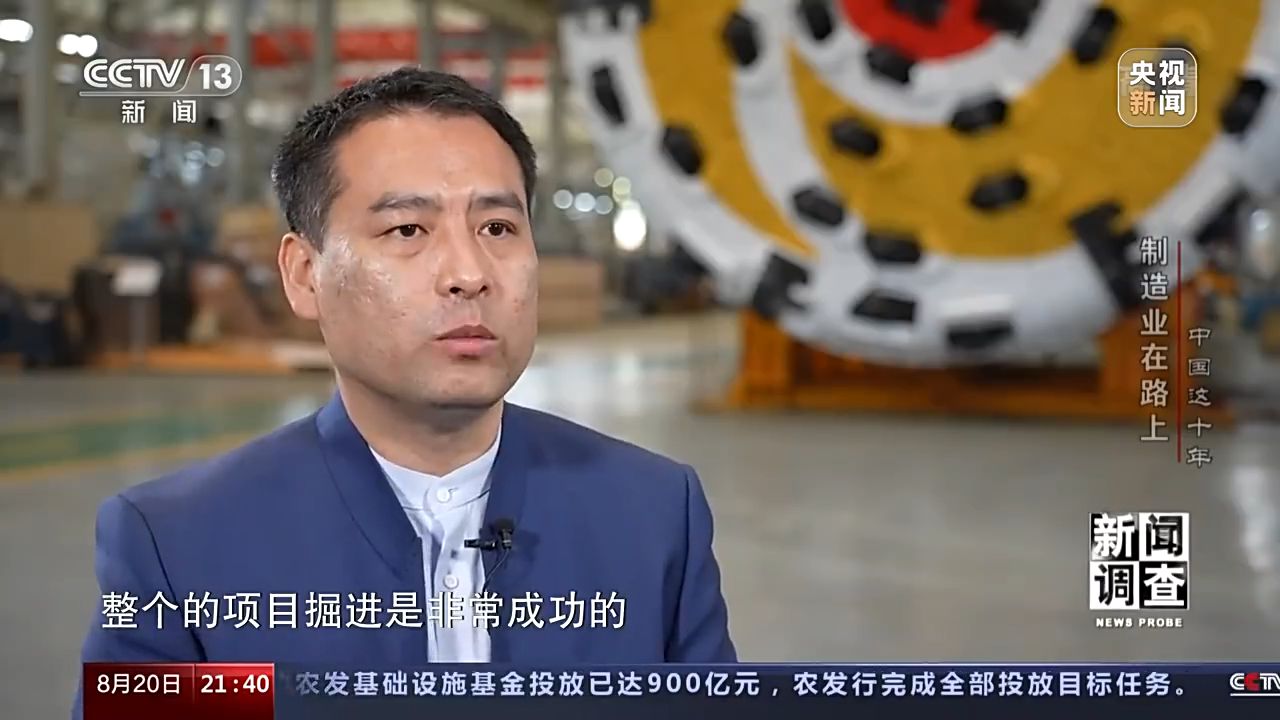 中鐵工程裝備集團(tuán)有限公司總經(jīng)理 張志國:(工程)當(dāng)中設(shè)備它通過了,一個大的球一樣的巖石,這個是當(dāng)時在地質(zhì)勘察階段是沒有發(fā)現(xiàn)的,但是就是因?yàn)槎軜?gòu)機(jī)設(shè)計(jì)的它的性能是比較好的,整個的項(xiàng)目掘進(jìn)是非常成功的。