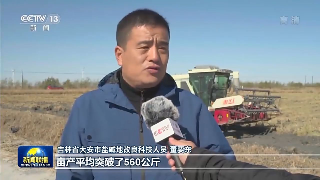 吉林省大安市鹽堿地改良科技人員 董要東:經(jīng)過我們實(shí)打?qū)嵤諟y產(chǎn),畝產(chǎn)平均突破560公斤。