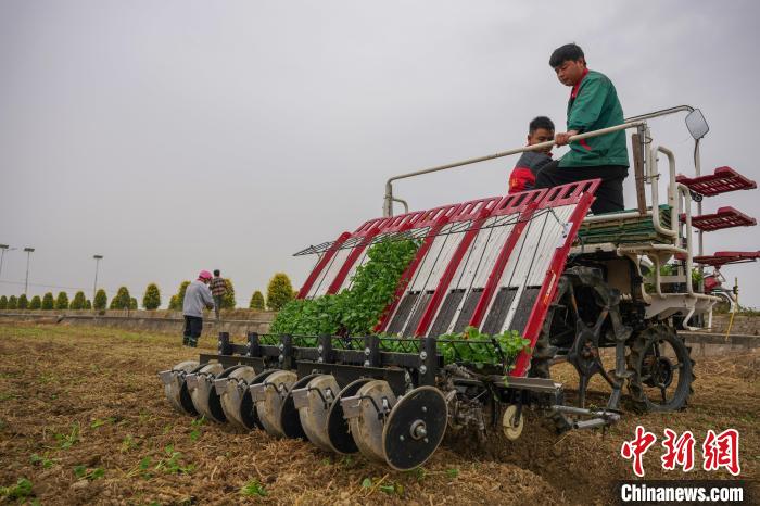 圖為南昌市安義縣農(nóng)戶正在進(jìn)行油菜毯狀苗機(jī)械化育苗移栽。 記者 華山 攝
