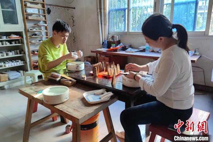 張才枝的兩個(gè)徒弟在學(xué)習(xí)制筆。 吳冠標(biāo) 攝