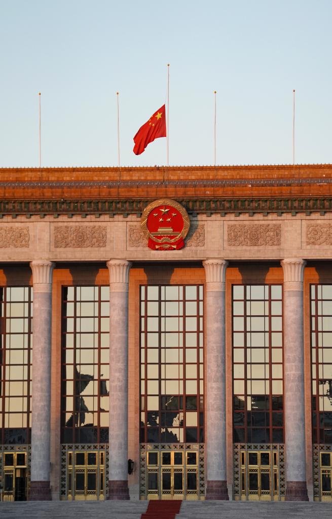 人民大會(huì)堂下半旗悼念江澤民同志逝世