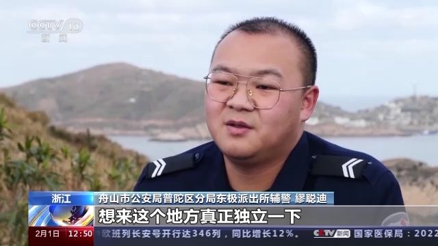 舟山市公安局普陀區(qū)分局東極派出所輔警 繆聰迪:因?yàn)槲蚁雽W(xué)會(huì)獨(dú)立,我之前為什么不在(舟山)本島應(yīng)聘輔警,因?yàn)槲沂菑男“謰尪紝?duì)我挺好的,大學(xué)以后,我爸媽經(jīng)常一個(gè)禮拜,一兩個(gè)禮拜來學(xué)??次乙淮?,我從來沒有獨(dú)立過,想來這個(gè)地方真正獨(dú)立一下。