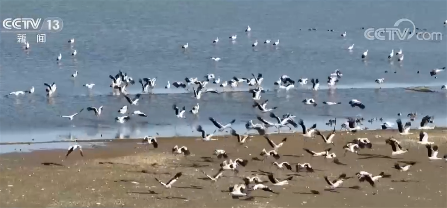 由于今年氣溫偏高,候鳥北遷的時(shí)間比往年提前了10天以上。在溫暖的陽(yáng)光下,候鳥們或在高空展翅,或在淺灘覓食,其中不乏各種珍稀鳥類。湖面煙波浩渺,空中萬鳥翔集,蔚為壯觀。