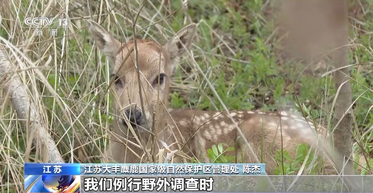 江蘇大豐麋鹿國(guó)家級(jí)自然保護(hù)區(qū)管理處 陳杰:我們例行野外巡查時(shí)發(fā)現(xiàn)了這頭小鹿,這是我們今年第一頭新生小鹿,每年的3月初,麋鹿開(kāi)始產(chǎn)仔,到5月份會(huì)達(dá)到一個(gè)高峰期。