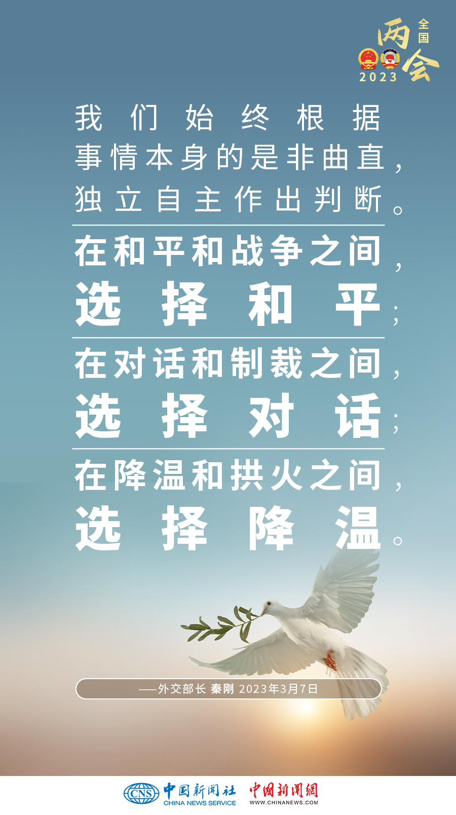 3月7日上午,十四屆全國人大一次會議新聞中心舉行記者會,邀請外交部長秦剛就“中國外交政策和對外關(guān)系”相關(guān)問題回答中外記者提問。一組海報(bào)帶您概覽記者會上的“中國外交好聲音”——