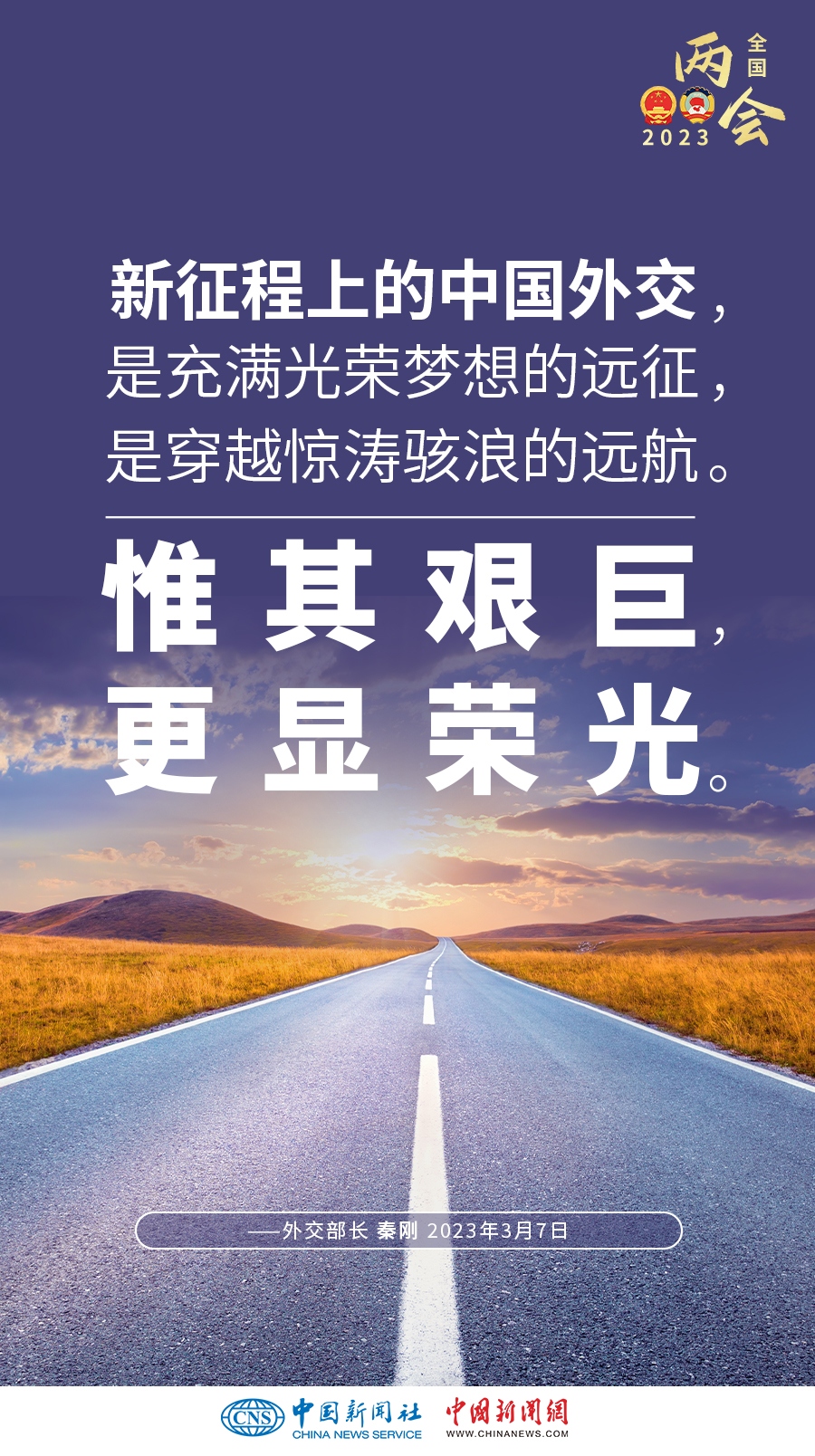秦剛:當(dāng)今世界并不太平,動蕩與變革交織,團(tuán)結(jié)與分裂碰撞,機(jī)遇與挑戰(zhàn)并存。新征程上的中國外交,是充滿光榮夢想的遠(yuǎn)征,是穿越驚濤駭浪的遠(yuǎn)航。惟其艱巨,更顯榮光。我們將在以習(xí)近平同志為核心的黨中央堅(jiān)強(qiáng)領(lǐng)導(dǎo)下,踐行習(xí)近平外交思想,貫徹黨的二十大精神,始終堅(jiān)持維護(hù)世界和平、促進(jìn)共同發(fā)展的外交政策宗旨,迎難而上,勇于擔(dān)當(dāng),為全面建設(shè)社會主義現(xiàn)代化國家營造良好外部環(huán)境,書寫新時(shí)代中國特色大國外交新篇章。