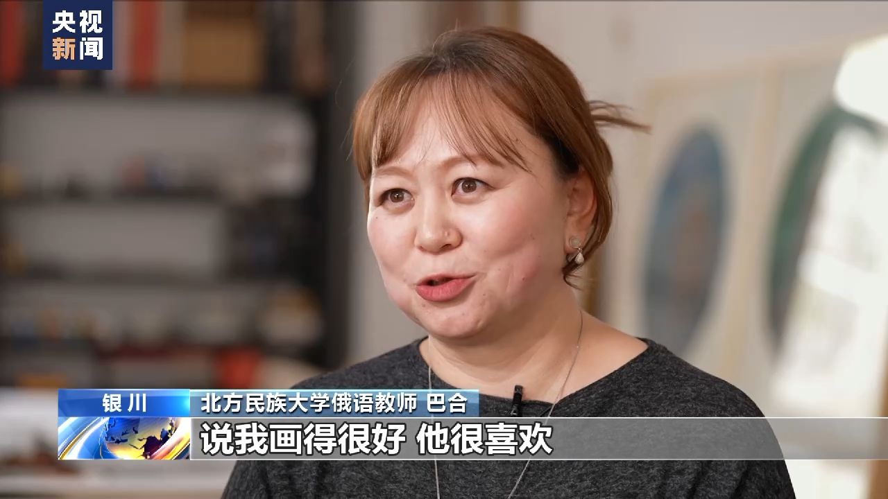 北方民族大學(xué)俄語(yǔ)教師 巴合:我丈夫看了我的畫(huà),說(shuō)我畫(huà)得很好,他很喜歡。從那以后,我就開(kāi)始了我的藝術(shù)之旅。