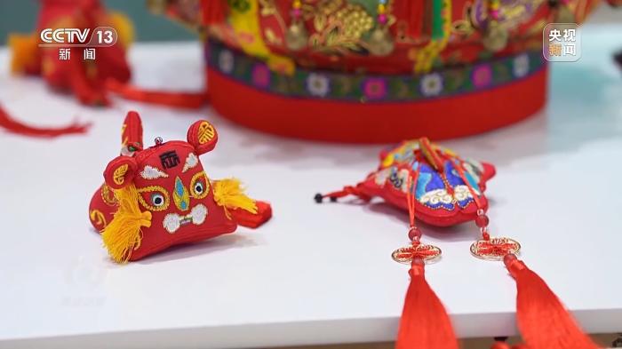 在江蘇展區(qū),一位正在做針線活的白發(fā)老人引人注目,她是江蘇省級(jí)非遺項(xiàng)目傳承人王秀英。王奶奶做的徐州香包名字叫做針棒,有著豐厚的文化蘊(yùn)涵和文化價(jià)值,入選第一批國(guó)家級(jí)非物質(zhì)文化遺產(chǎn)擴(kuò)展項(xiàng)目名錄。這次和王奶奶一同來參展的還有她的孫女孫歌堯。在學(xué)習(xí)傳統(tǒng)工藝的同時(shí),孫歌堯大膽創(chuàng)新,嘗試融入更多技法和材質(zhì)。