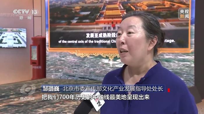 北京市委宣傳部文化產(chǎn)業(yè)發(fā)展指導(dǎo)處處長(zhǎng)鄒璐?。哼\(yùn)用了衛(wèi)星遙感、裸眼3D相關(guān)技術(shù),把我們700年歷史的中軸線最美地呈現(xiàn)出來。
