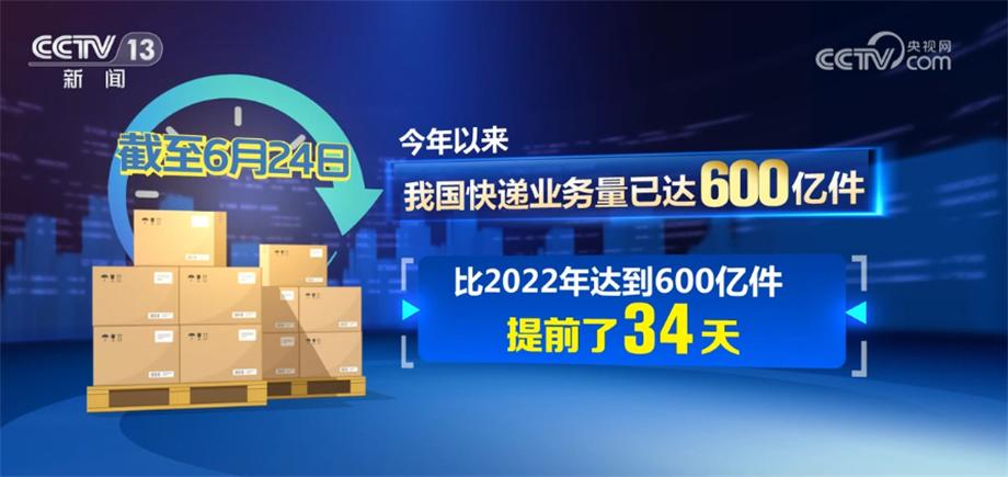國家郵政局數(shù)據(jù)顯示,截至6月24日,今年以來我國快遞業(yè)務量已達600億件,比2022年達到600億件提前了34天。