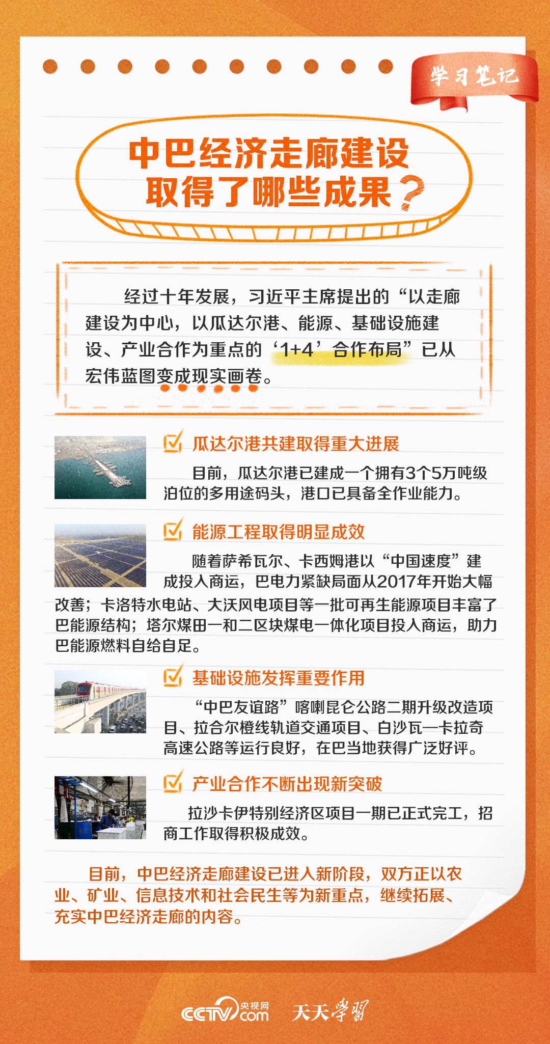 今年是習近平主席提出共建“一帶一路”倡議十周年,也是中巴經濟走廊啟動十周年。經過十年的發(fā)展,中巴經濟走廊已成為中巴友誼“新標桿”。央視網《天天學習·學習筆記》特梳理中巴經濟走廊相關知識點,與您一起學習。