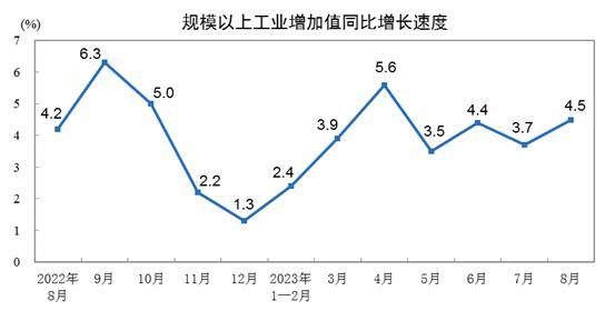 國家統(tǒng)計局:8月份規(guī)模以上工業(yè)增加值增長4.5%
