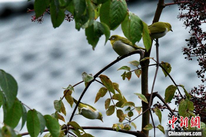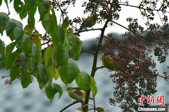 圖為在云南大山包黑頸鶴國家級自然保護區(qū)拍攝到的紅脅繡眼鳥和灰腹繡眼鳥?!翘?攝