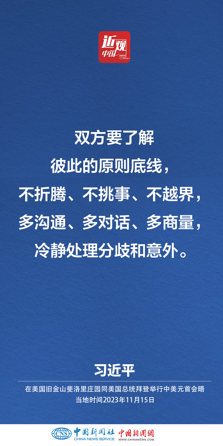 當(dāng)?shù)貢r(shí)間11月15日,中國(guó)國(guó)家主席習(xí)近平在美國(guó)舊金山斐洛里莊園同美國(guó)總統(tǒng)拜登舉行中美元首會(huì)晤。習(xí)近平指出——
