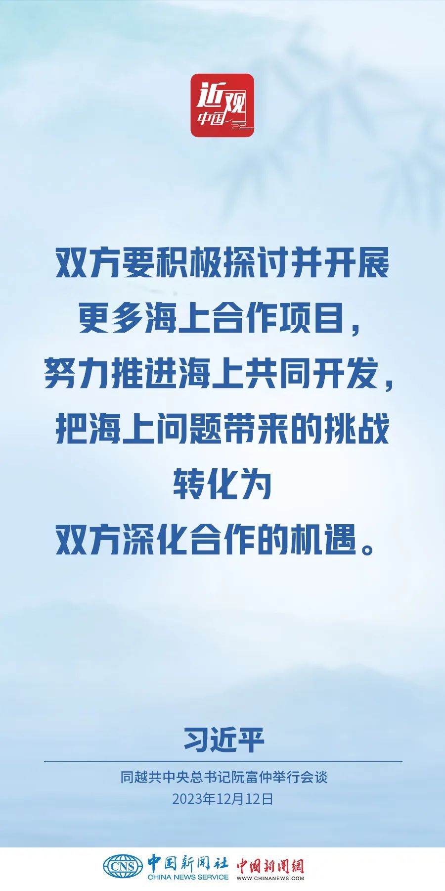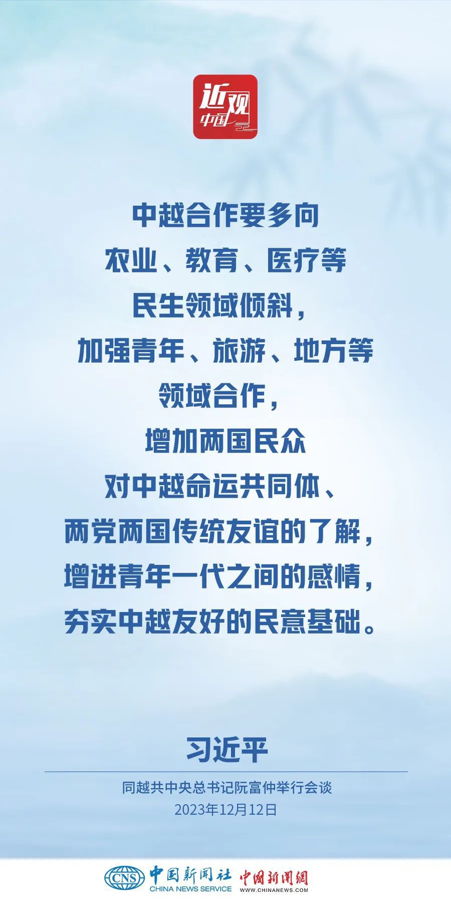 當地時間12月12日下午,剛剛抵達河內的中共中央總書記、國家主席習近平在越共中央駐地同越共中央總書記阮富仲舉行會談。雙方宣布中越兩黨兩國關系新定位,在深化中越全面戰(zhàn)略合作伙伴關系基礎上,攜手構建具有戰(zhàn)略意義的中越命運共同體。習近平指出——